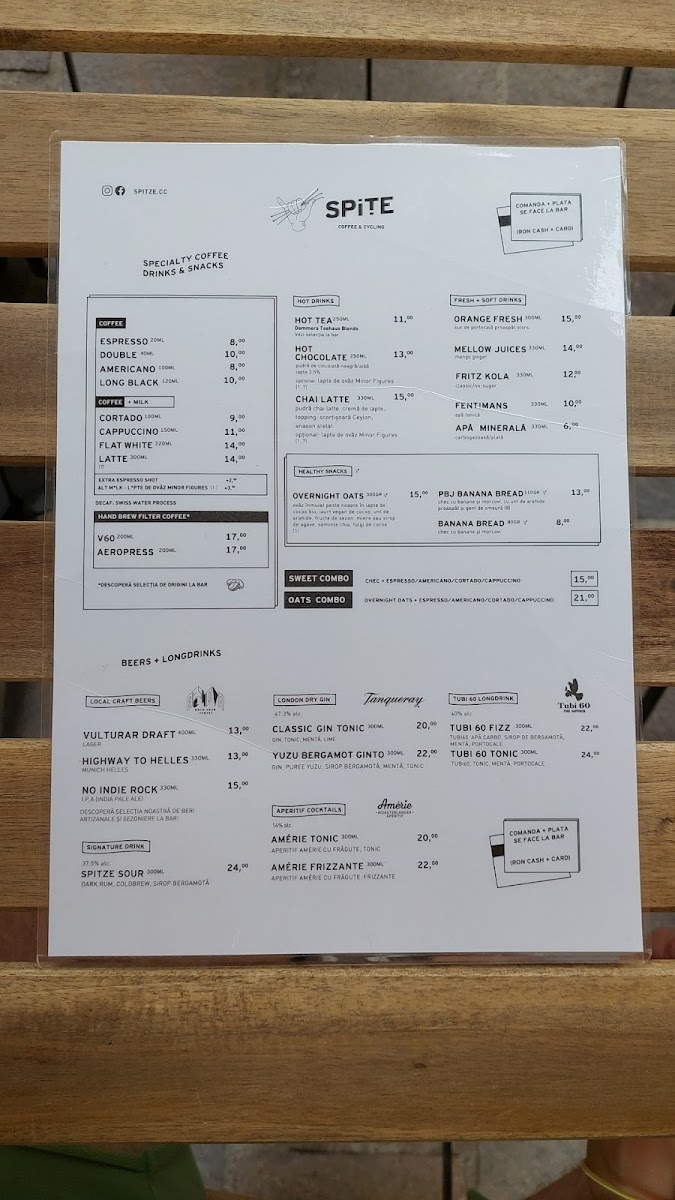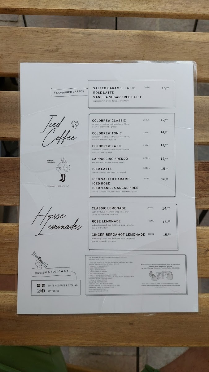 Spițe: Coffee & Cycling Menu